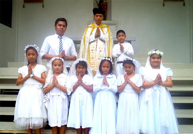 First Communicants group photo at St. Joseph's Shrine.