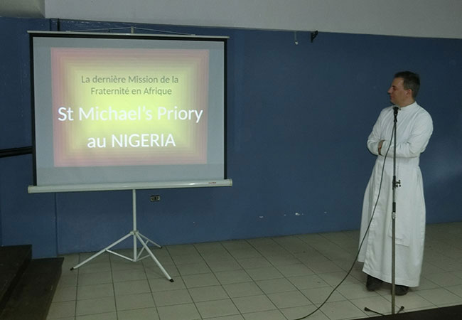Fr. John Jenkins gives a presentation about the Society's mission in Nigeria.