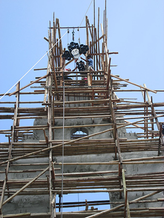 Not too clear … the cross reaches its height among the bamboo scaffolding. … next time a clear picture without the scaffolding: