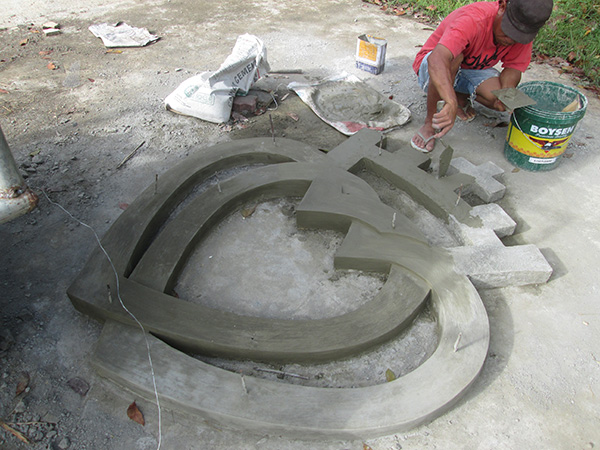 The “Cor Unum” (with one heart), the official symbol of the Society, in fabrication.