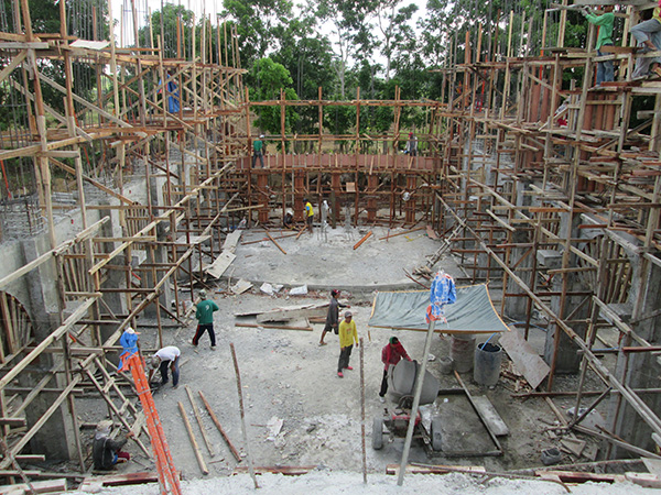Looking toward the future sanctuary, the choir loft looms 5.2m high.