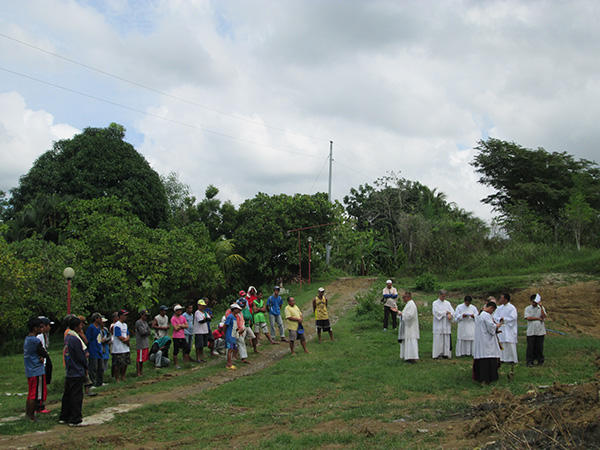 Fr. Cacho explains to the workers the Catholic way of expelling the devil ( as opposed to the pagan chicken’s blood “ceremony”).