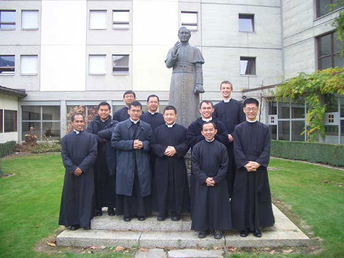 Econe courtyard with the statue of St. Pius X in the background.
