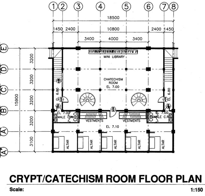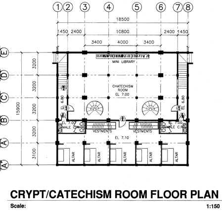 Under the church will be a Catechism hall or conference hall. Behind it, on the same level, will be a crypt. This crypt will have 5 altars where visiting priests may offer their masses. This is particularly important for priest’s retreats or meetings. On either side there will be CRs also. |
