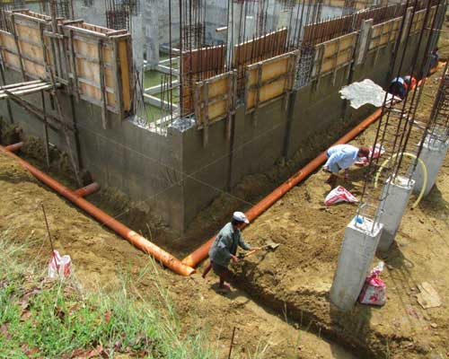Far below the surface lie the seepage pipes to assure that no water will ever gather below the surface of the Church.