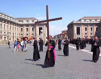 arrives on the Piazza of St Peter.