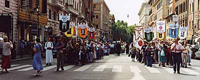 pilgrimage, even by the media, with their 16 colorful banners: one